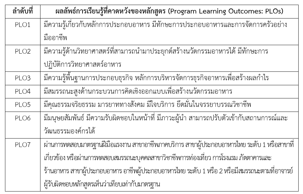 หลักสูตรวิทยาศาสตรบัณฑิต สาขาวิชานวัตกรรมอาหารและเชฟมืออาชีพ หลักสูตรปรับปรุง พ.ศ. 2567